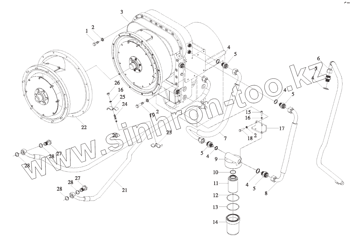 Каталог запасных частей к технике: XGMA XG935H. Torque Converter System (6J125Z-T20)