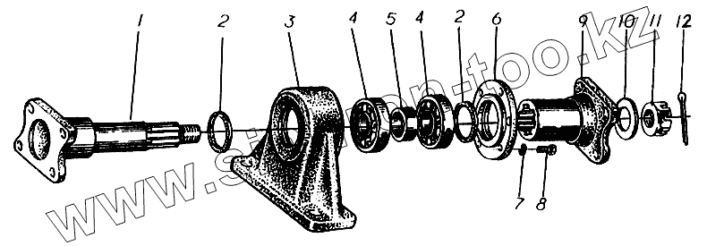 Каталог запасных частей к технике: Xiamen XZ636. Установка каркаса ведущего вала