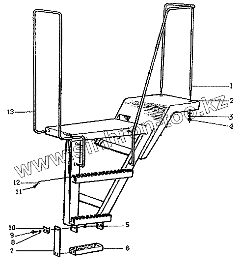 Каталог запасных частей к технике: Xiamen XZ636. Установка левого покрытия пола. Установка лестницы