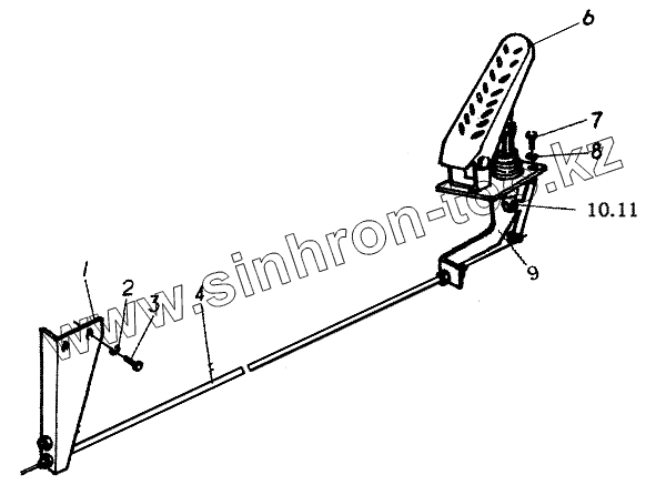 Каталог запасных частей к технике: Xiamen XZ636. Установка педали акселератора