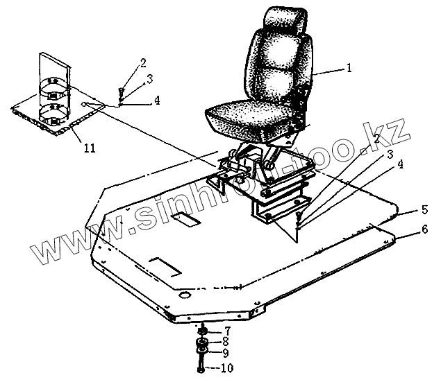Каталог запасных частей к технике: Xiamen XZ636. Установка сиденья и модуля пола