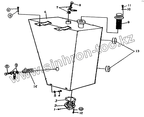 Каталог запасных частей к технике: Xiamen XZ636. Установка топливного бака