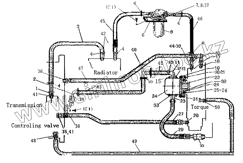 Каталог запасных частей к технике: Xiamen XZ636. Установка трансмиссионной гидравлической системы