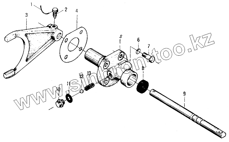 Каталог запасных частей к технике: Xiamen XZ636. Установка вилки высокой и низкой скорости