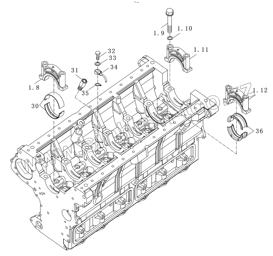Каталог запасных частей к технике: YTO X1204. Cylinder Block Assy