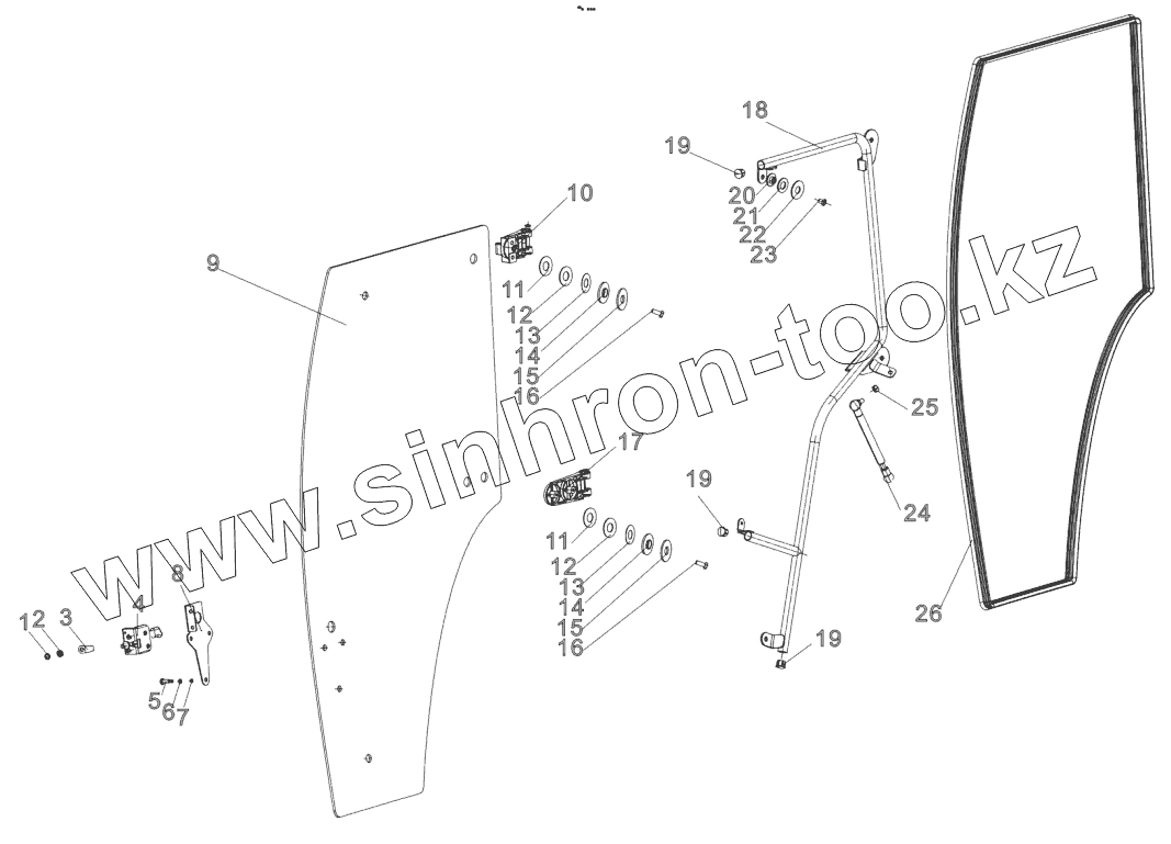 Каталог запасных частей к технике: YTO X1204. Door assembly (LH/RH)