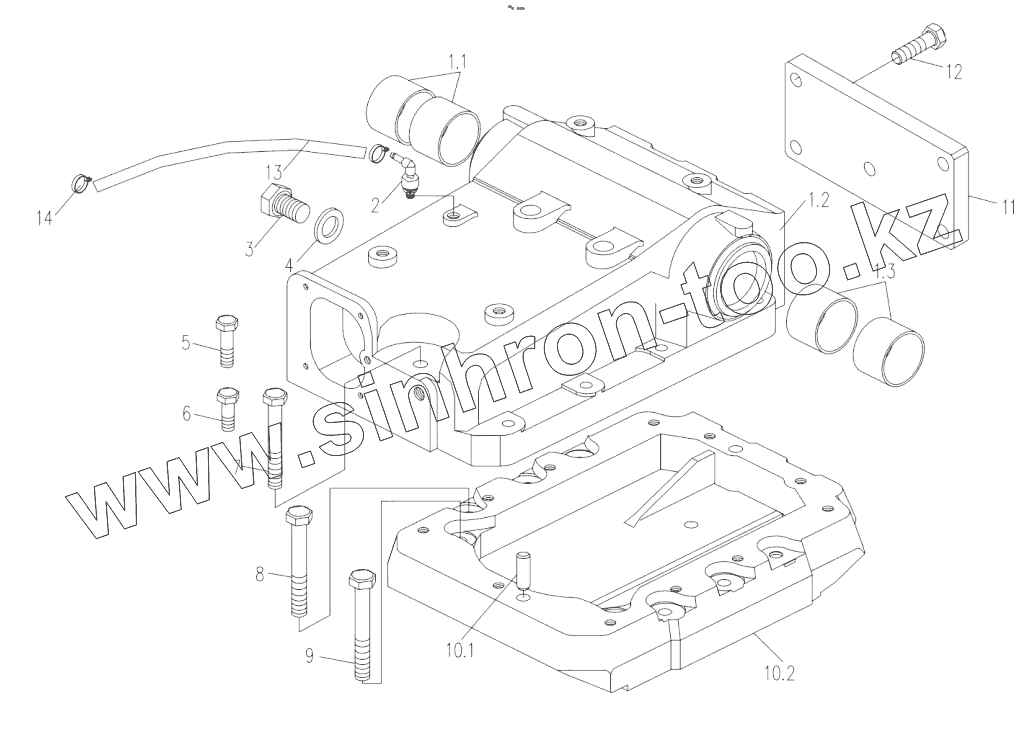 Каталог запасных частей к технике: YTO X1204. Lifter assembly with auxiliary cylinder-hydraulic lifter housing