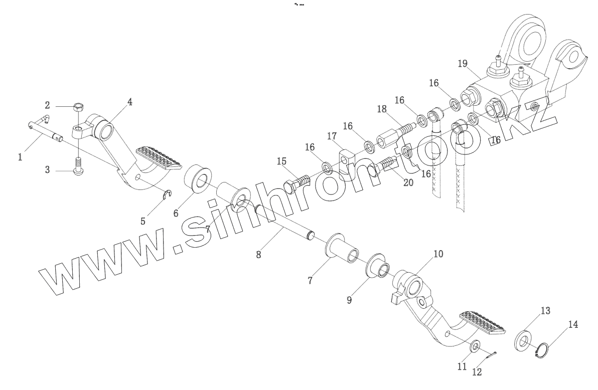 Каталог запасных частей к технике: YTO X1204. Service brake pedal control mechanism