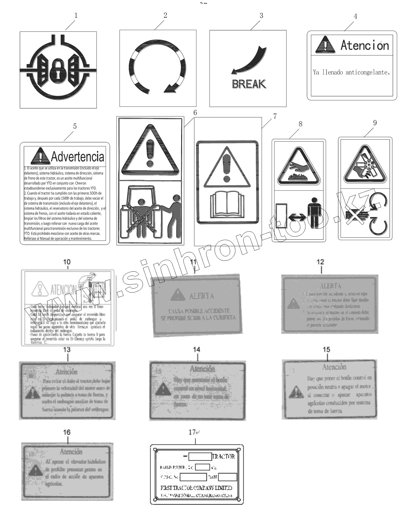Каталог запасных частей к технике: YTO X1204. Signs & decals (in Spanish)