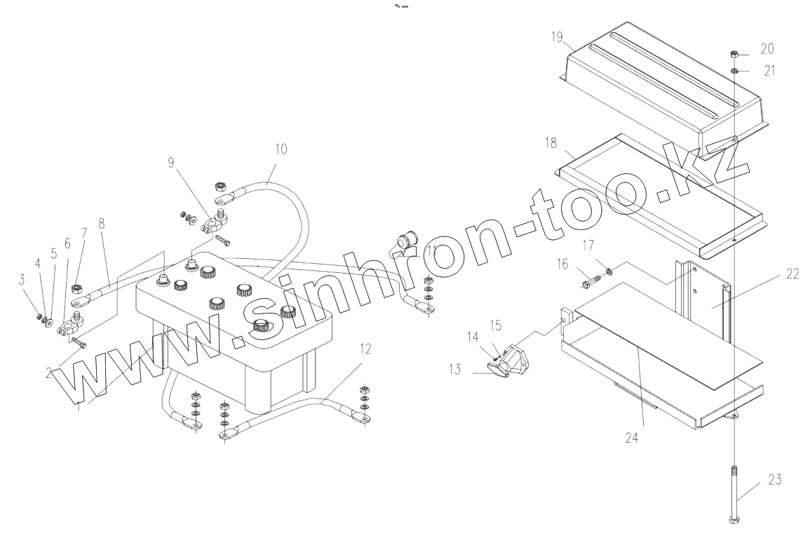 Каталог запасных частей к технике: YTO X1204. Starting cables, battery tray & fixture