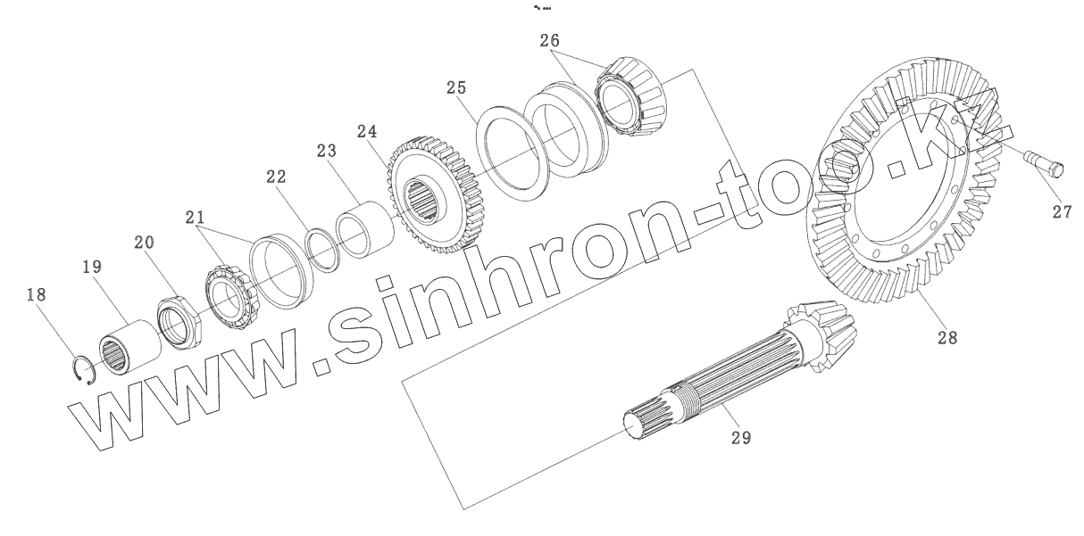 Каталог запасных частей к технике: YTO X1204. Transmission case assembly (RR)