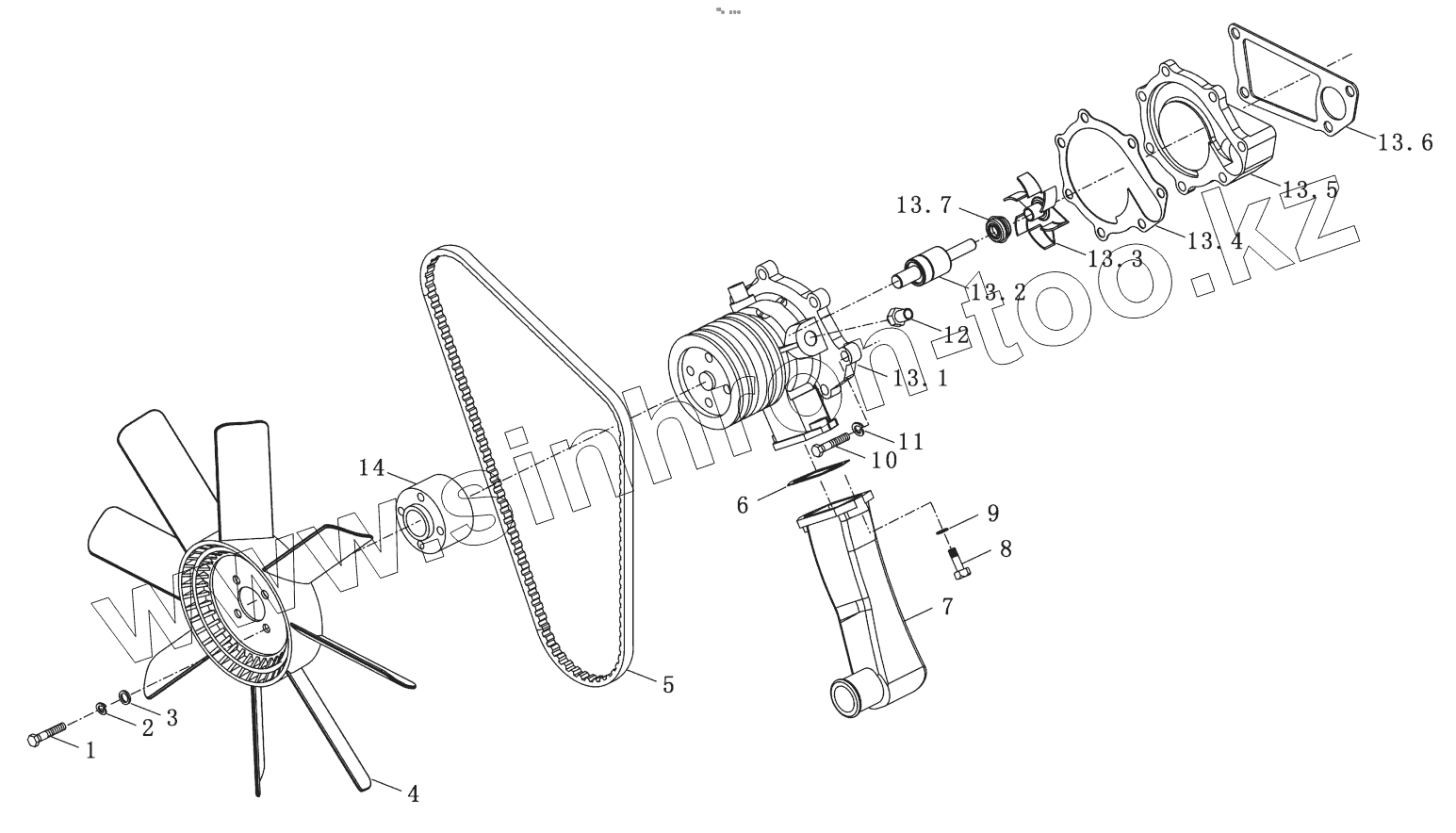Каталог запасных частей к технике: YTO X1204. Water Pump and Fan Assy