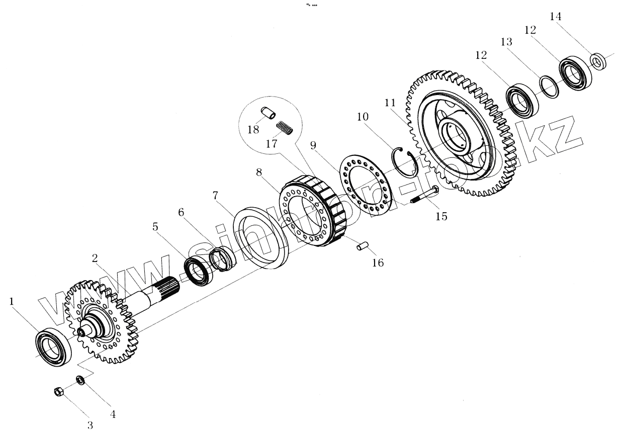 Каталог запасных частей к технике: YTO ZL50F. Gearbox (II) 2nd Shaft Assy
