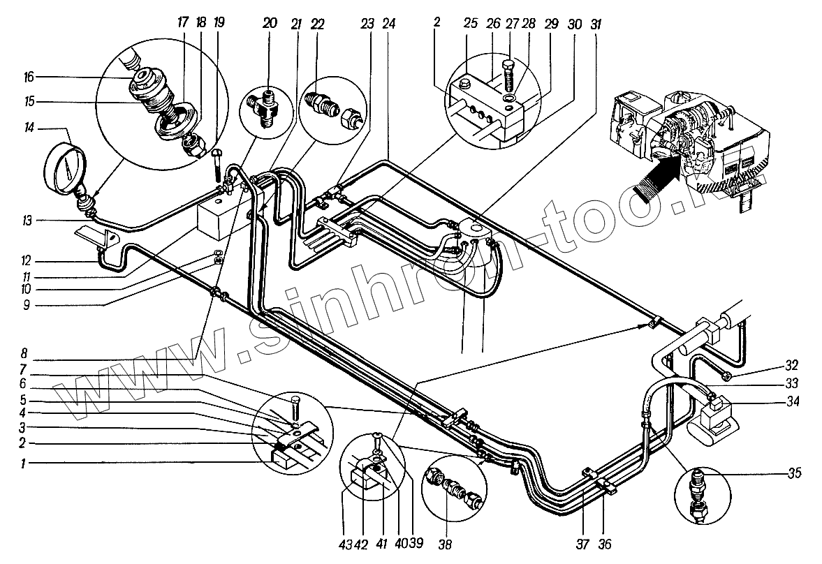 Каталог запасных частей к технике: ЮрМаш КС-4361А. Гидравлическое оборудование поворотной части 4361А.24