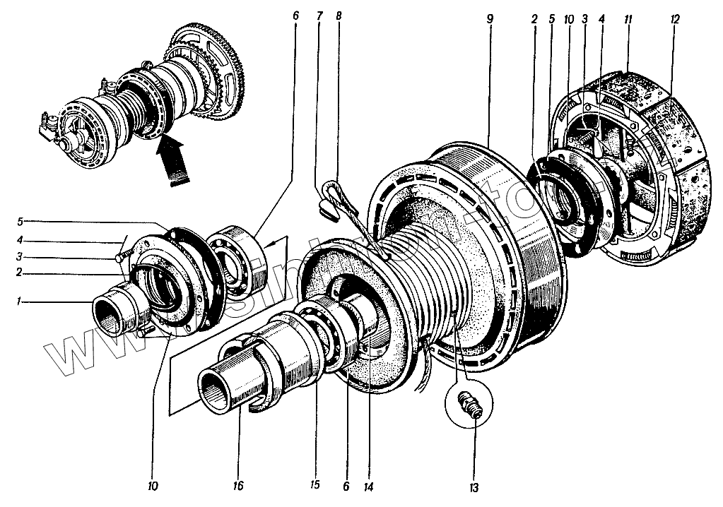 Каталог запасных частей к технике: ЮрМаш КС-4361А. Лебедка 4361А.20