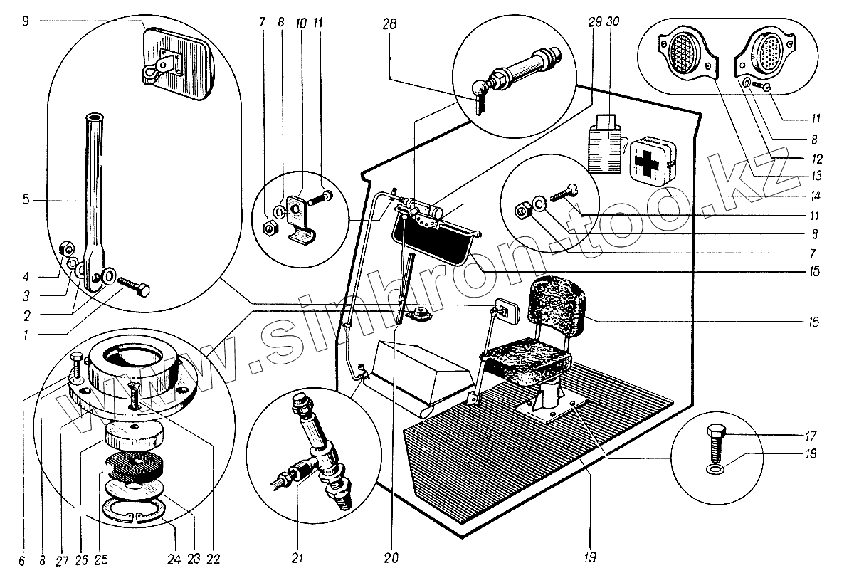 Каталог запасных частей к технике: ЮрМаш КС-4361А. Оборудование кабины 4361А.45