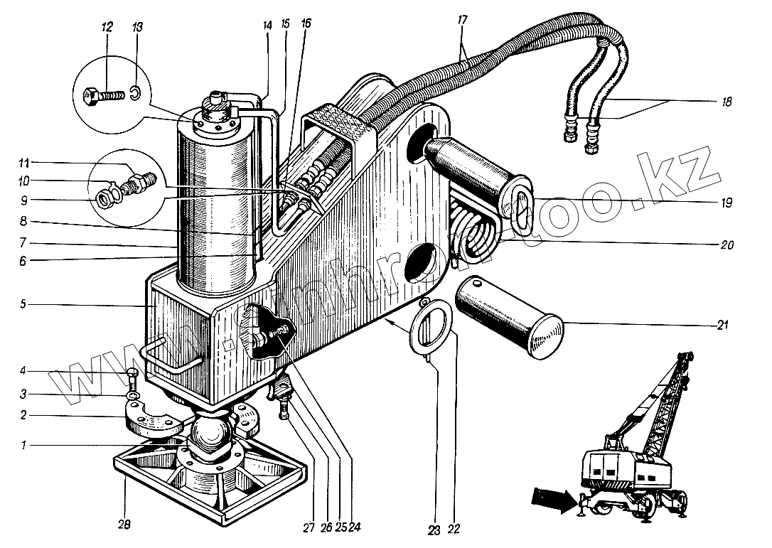 Каталог запасных частей к технике: ЮрМаш КС-4361А. Опоры выносные 4361А.11