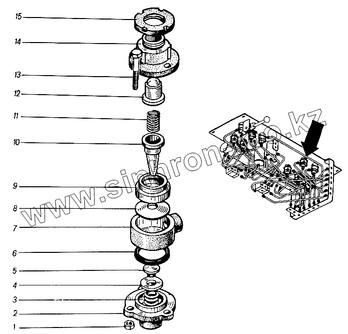 Каталог запасных частей к технике: ЮрМаш КС-4361А. Пост управления 4361А.50А. Золотник 264-23-00