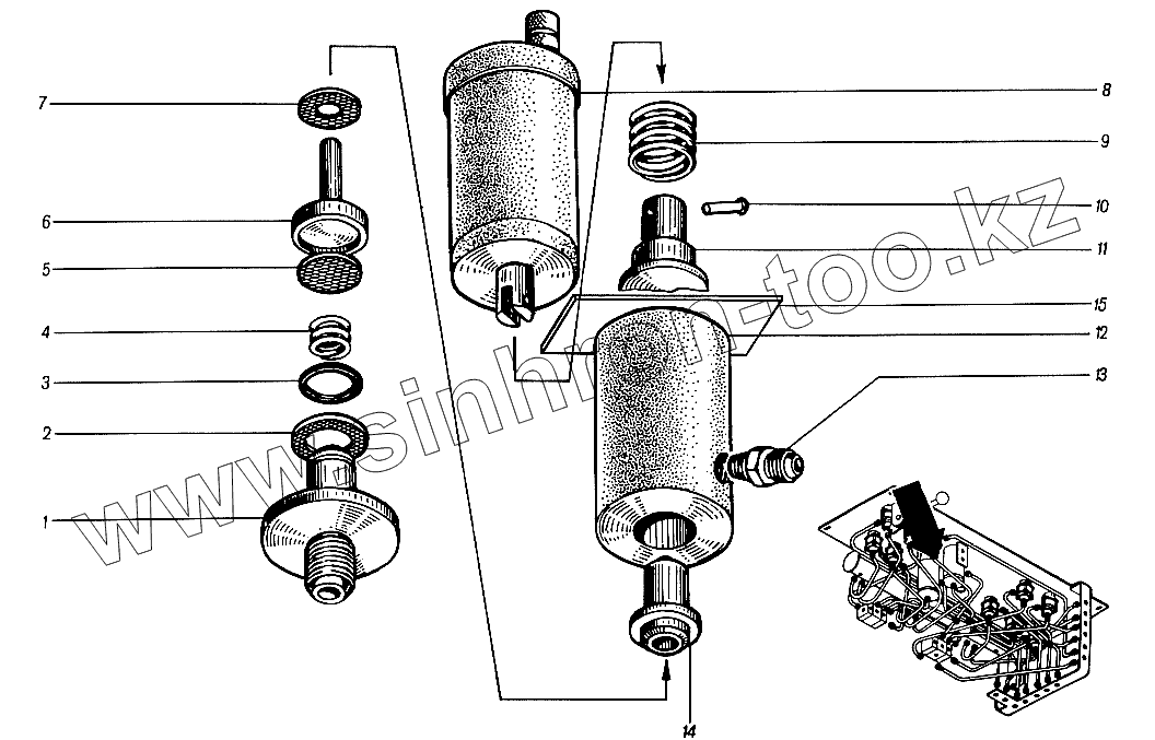 Каталог запасных частей к технике: ЮрМаш КС-4361А. Пост управления 4361А.50А. Золотник 4361А.50-600