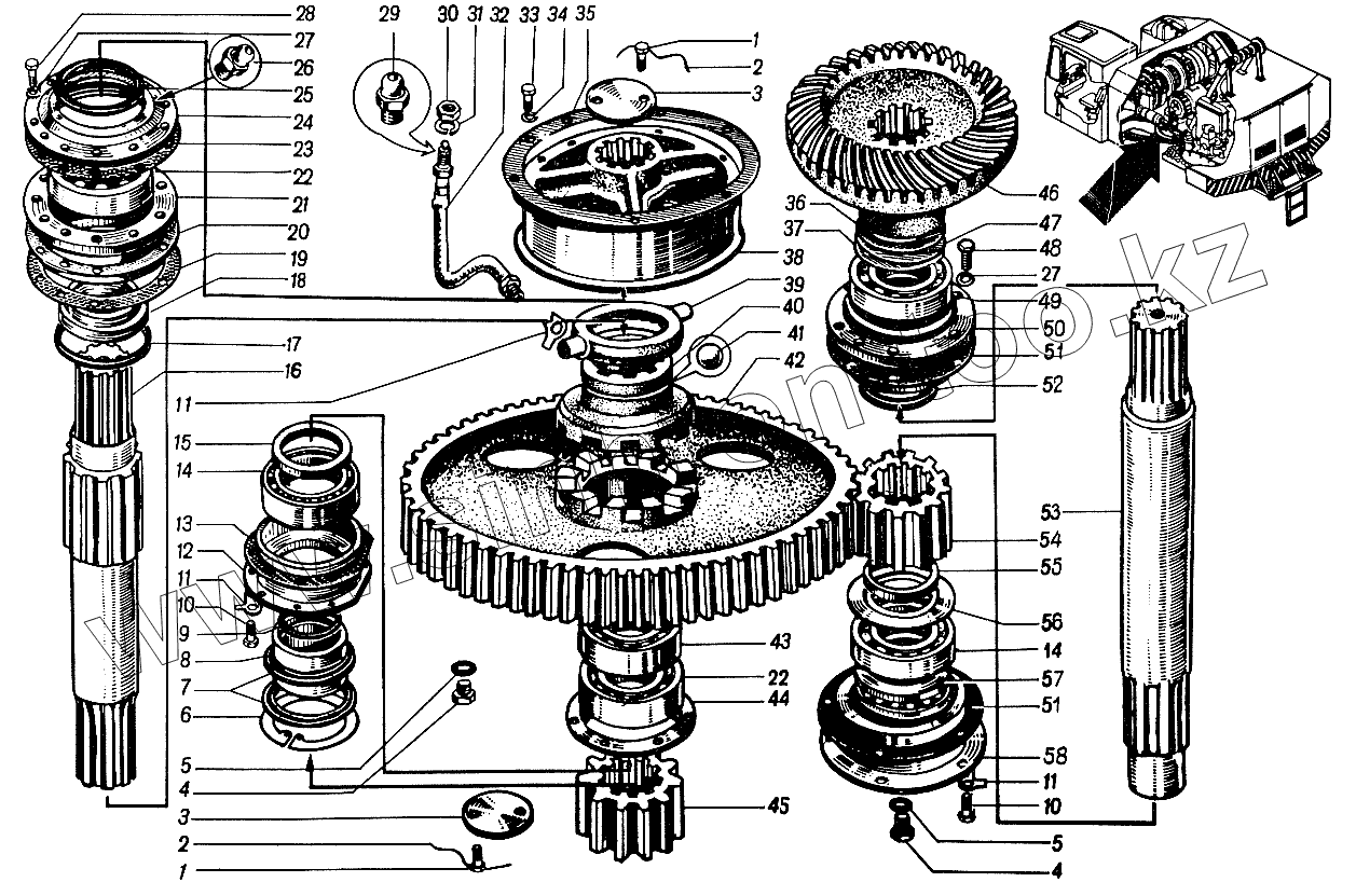 Каталог запасных частей к технике: ЮрМаш КС-4361А. Редуктор вращения и передвижения 4361А.19