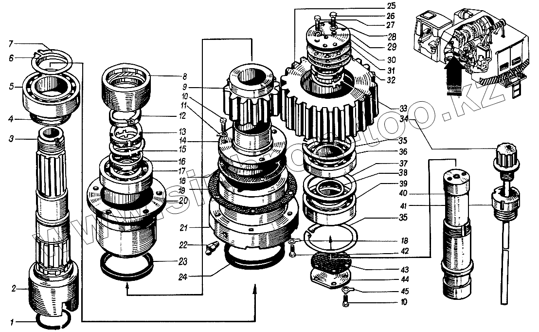 Каталог запасных частей к технике: ЮрМаш КС-4361А. Редуктор вращения и передвижения 4361А.19