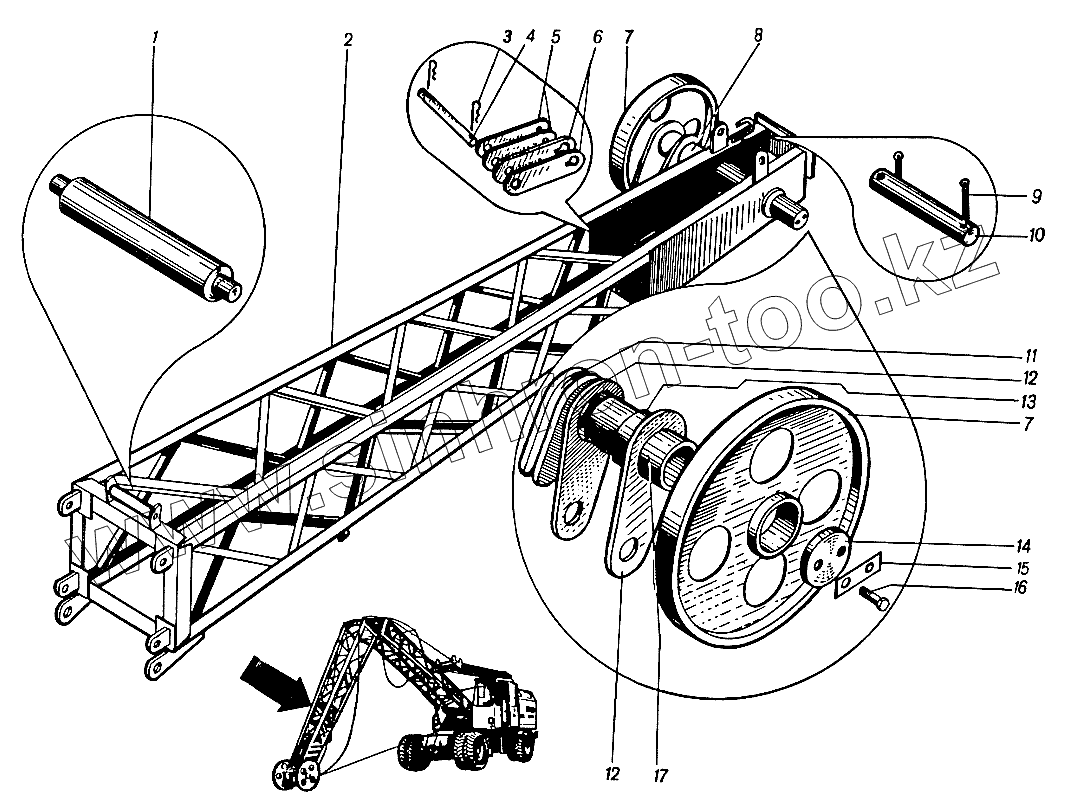 Каталог запасных частей к технике: ЮрМаш КС-4361А. Стреловое оборудование 4361А.32.