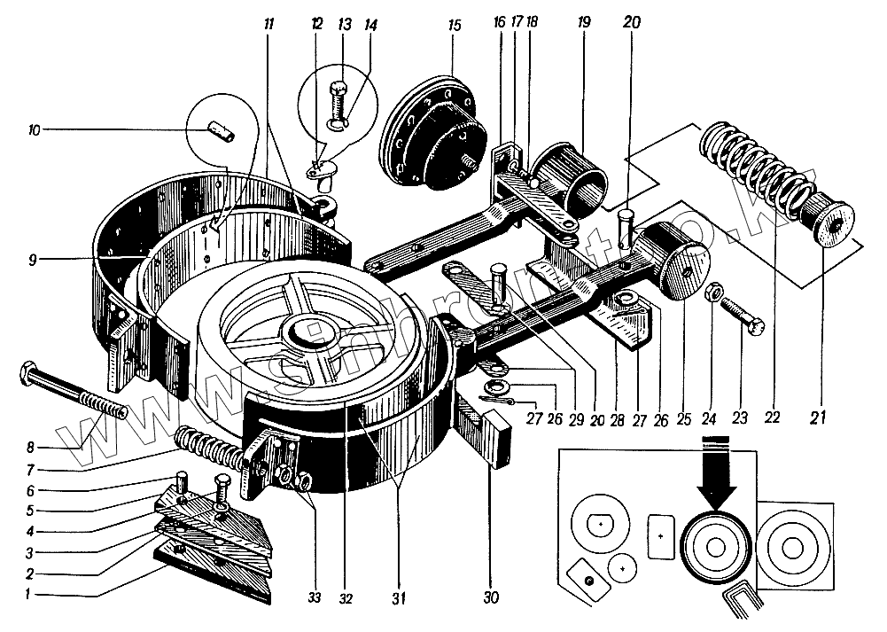 Каталог запасных частей к технике: ЮрМаш КС-4361А. Тормоз механизма вращения 4361А.22