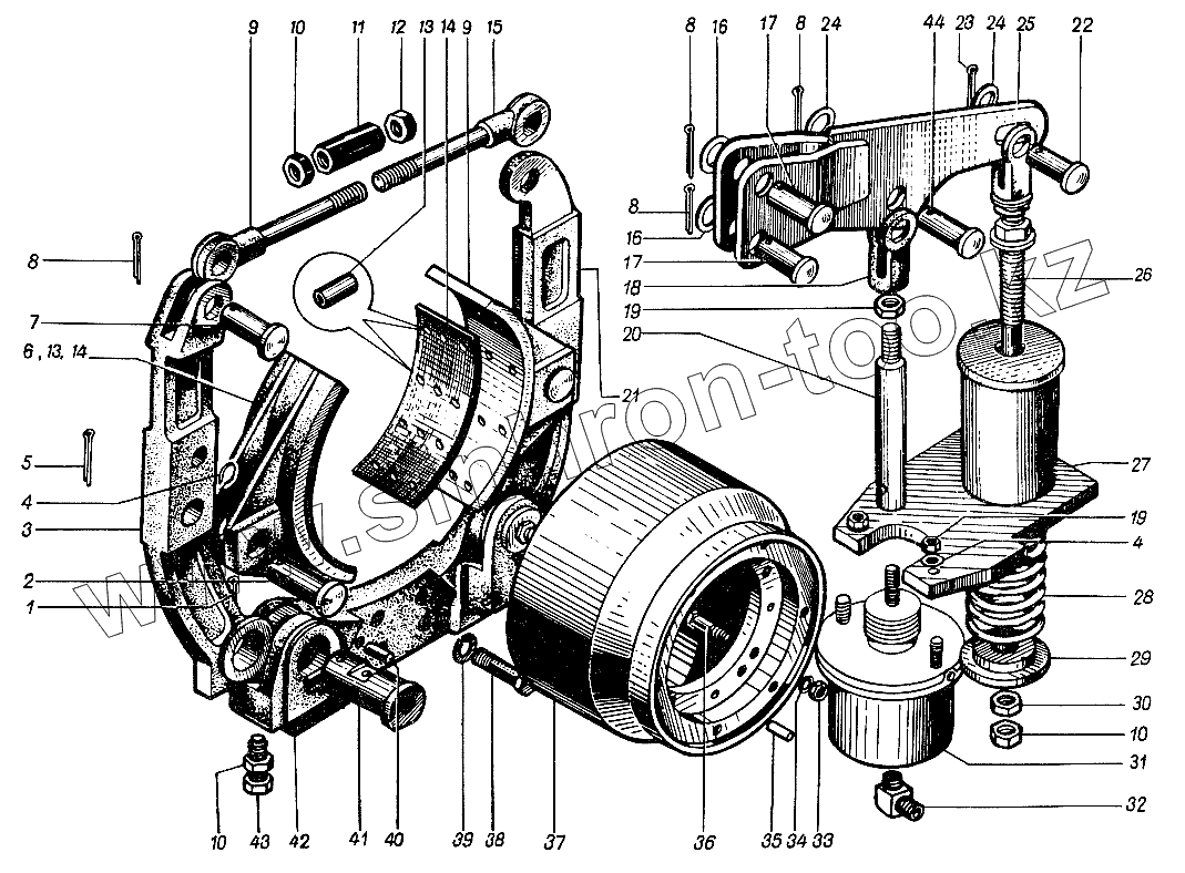 Каталог запасных частей к технике: ЮрМаш КС-4361А. Тормоз стояночный 4361А.05