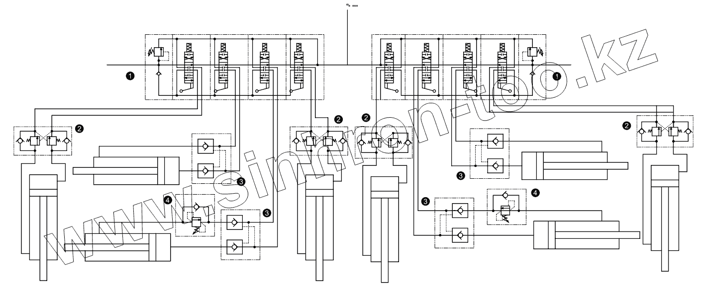 Каталог запасных частей к технике: Zoomlion 33X-4Z. Chassis hydraulic schematic diagram 001615458A0000000