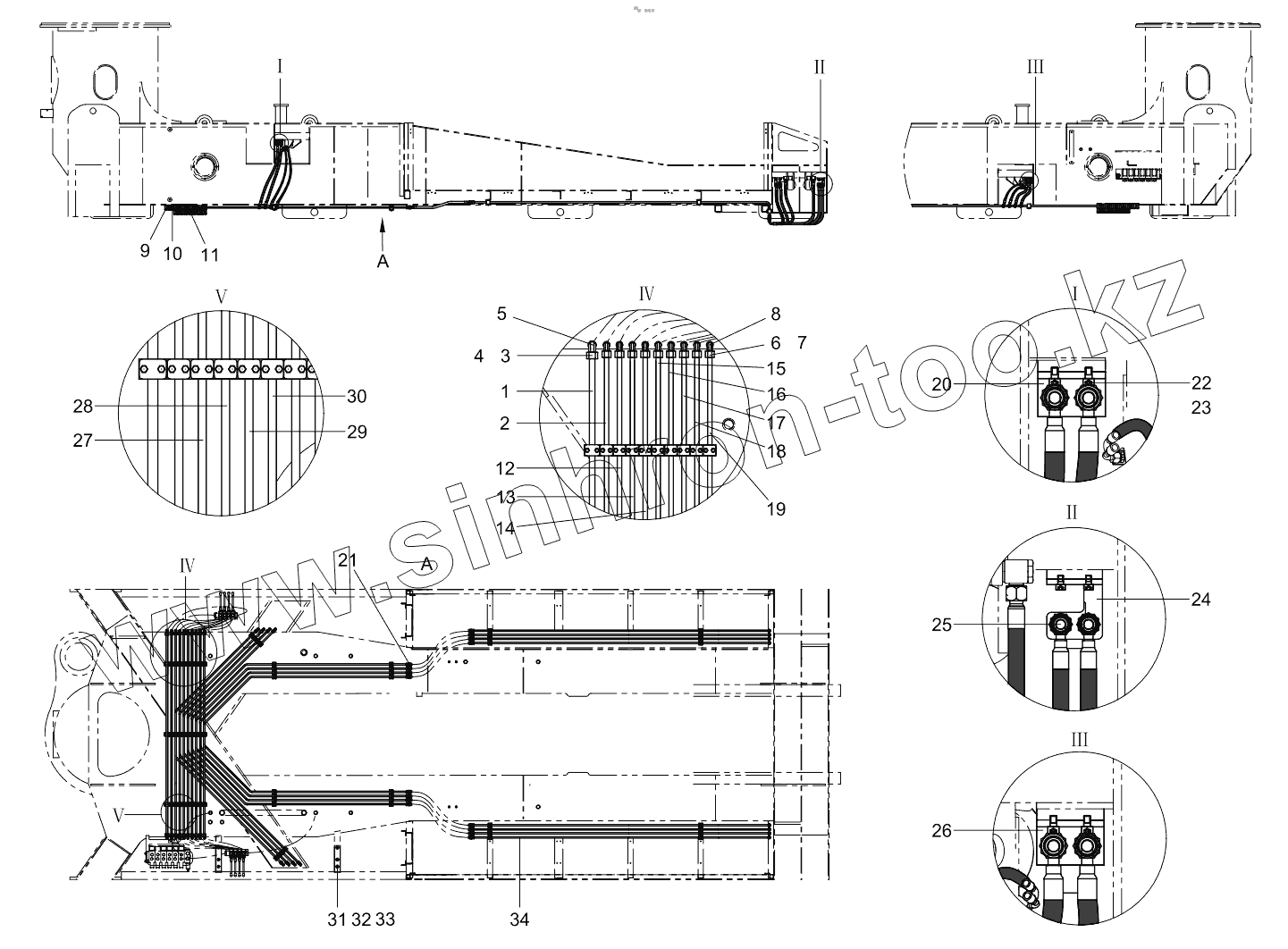 Каталог запасных частей к технике: Zoomlion 33X-4Z. Chassis layout diagram 001615457A0000000