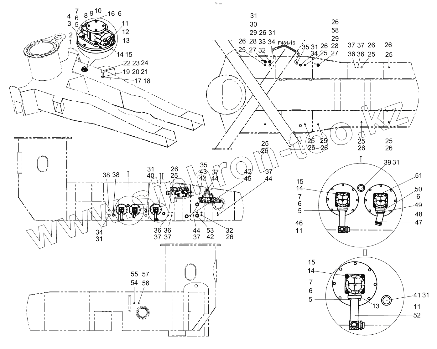 Каталог запасных частей к технике: Zoomlion 33X-4Z. Chassis oil port layout diagram 001615418A0001000