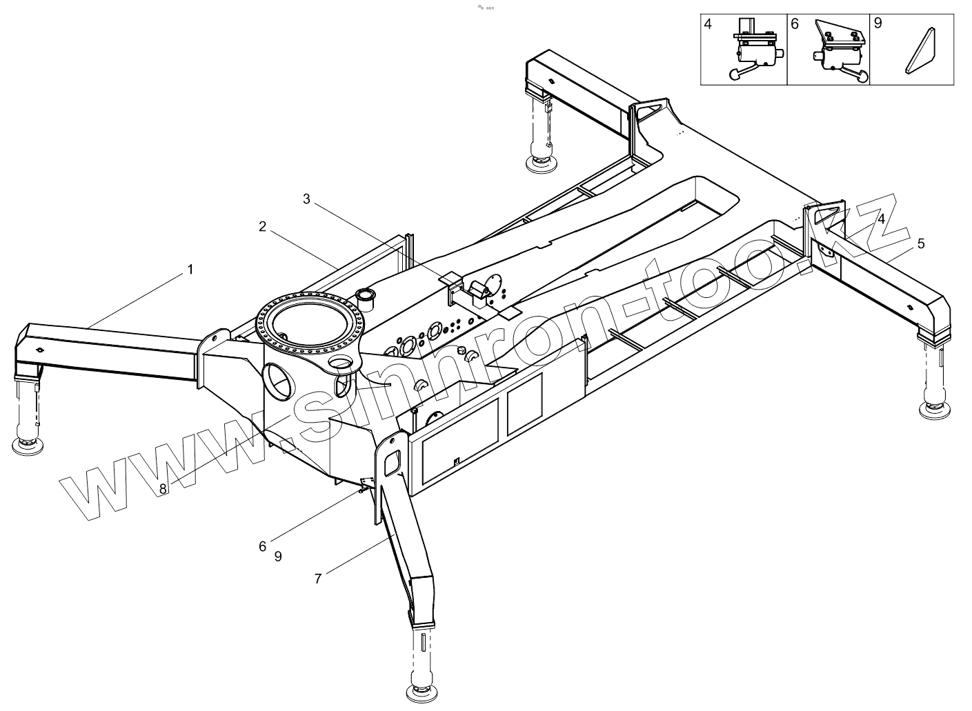 Каталог запасных частей к технике: Zoomlion 33X-4Z. Chassis outrigger assembly 001615403A0000000