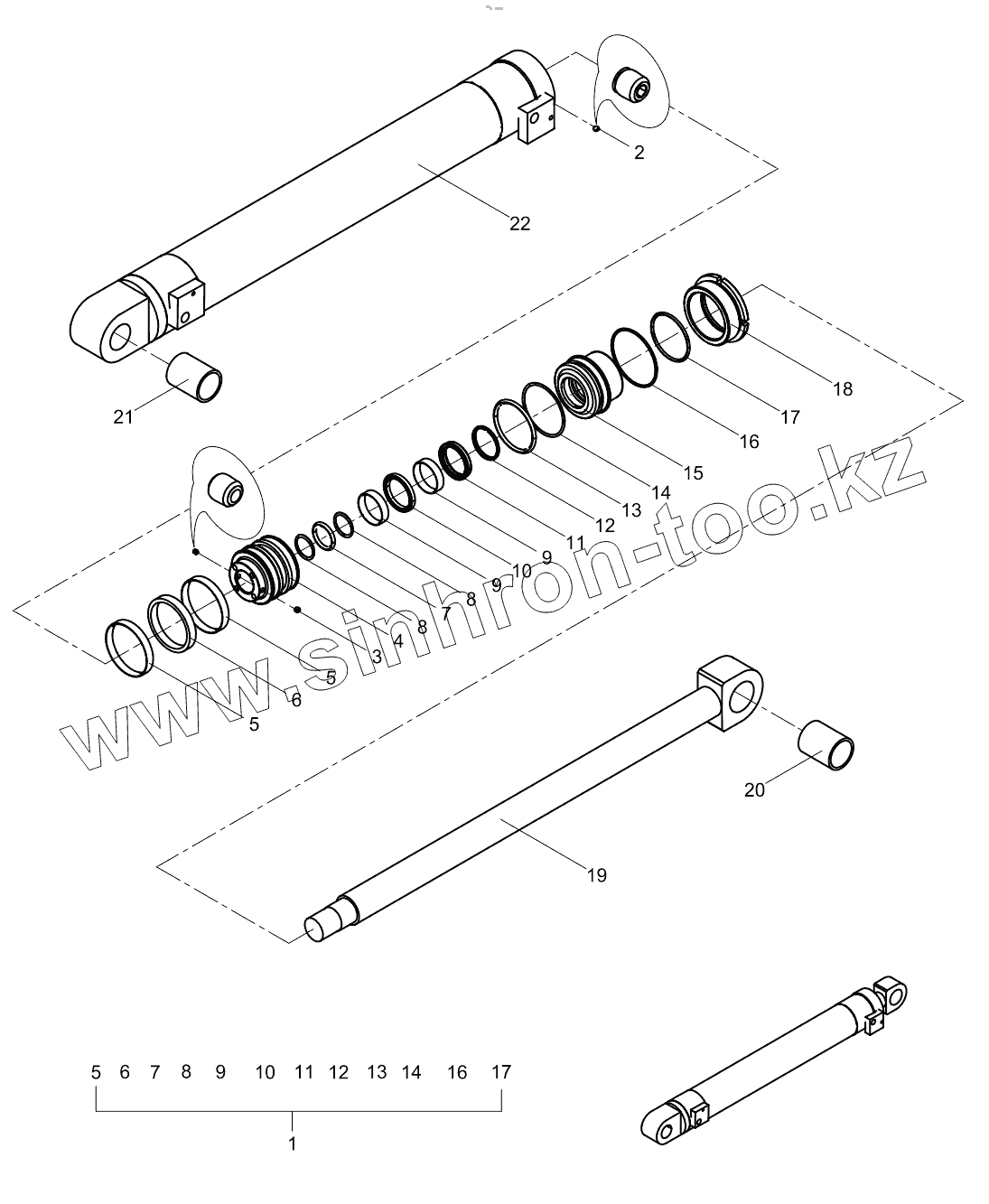 Каталог запасных частей к технике: Zoomlion 33X-4Z. Four-section arm cylinder 001615407A0400000