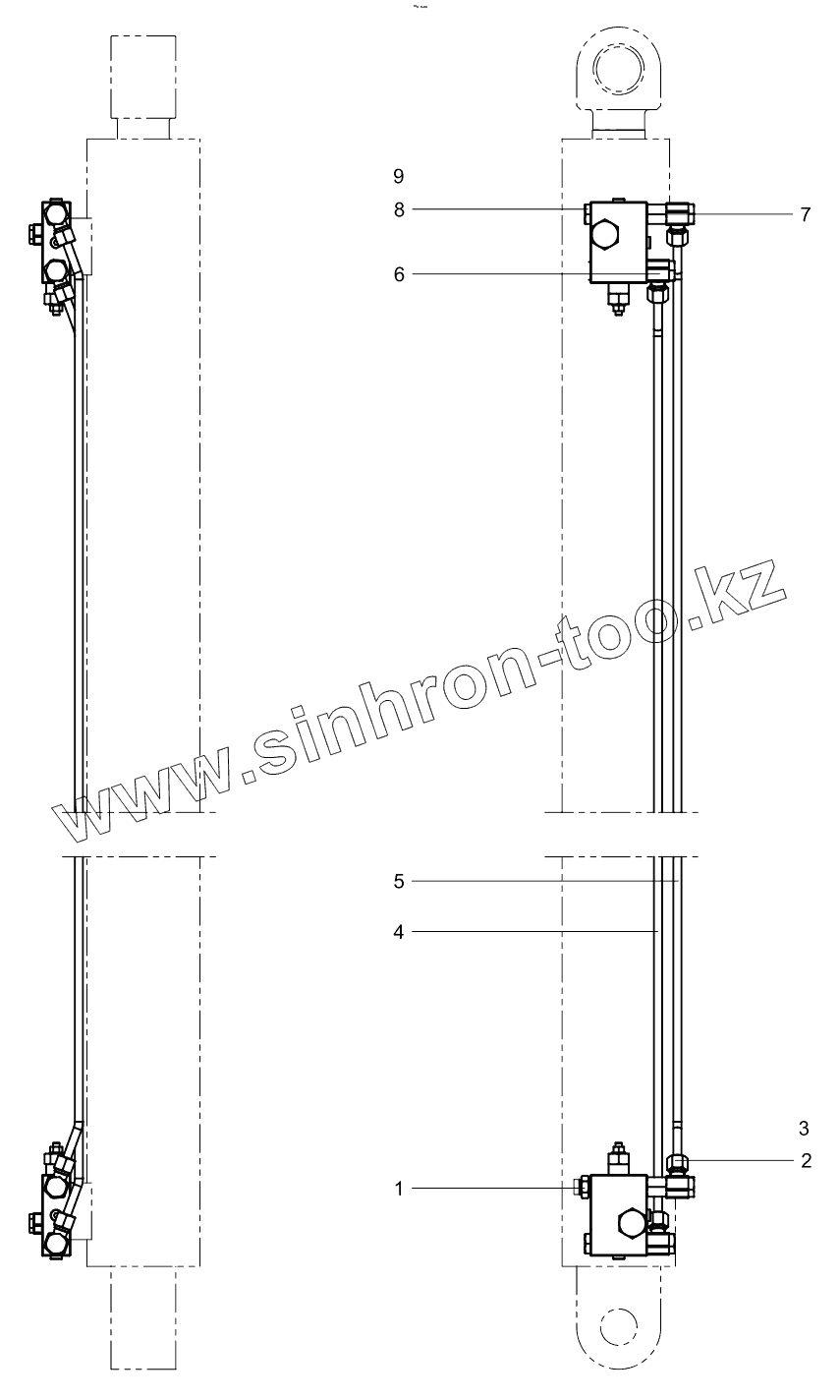Каталог запасных частей к технике: Zoomlion 33X-4Z. Four-section arm cylinder layout diagram 001615449A0007000