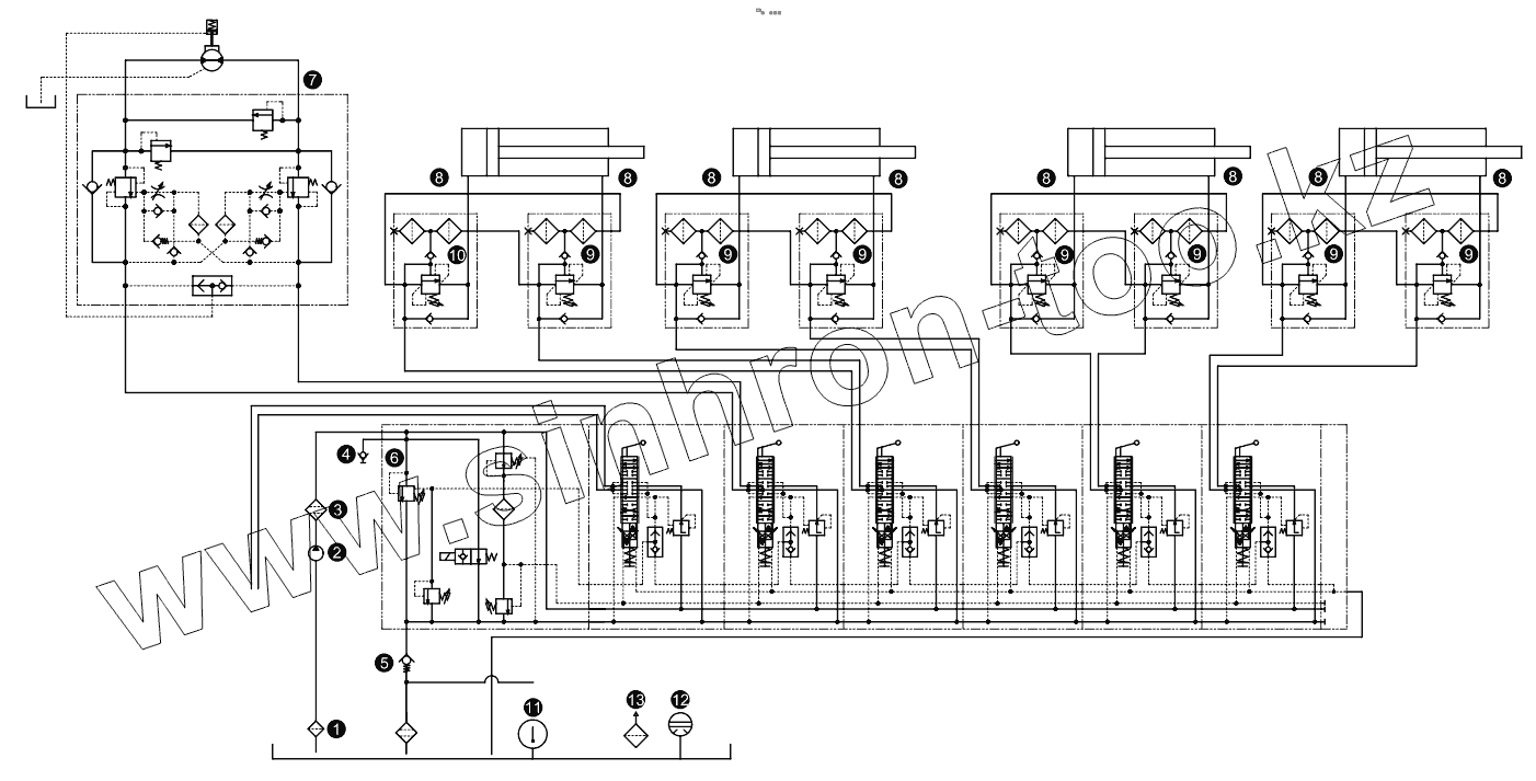 Каталог запасных частей к технике: Zoomlion 33X-4Z. Hydraulic schematic diagram of boom 001615450A0000000