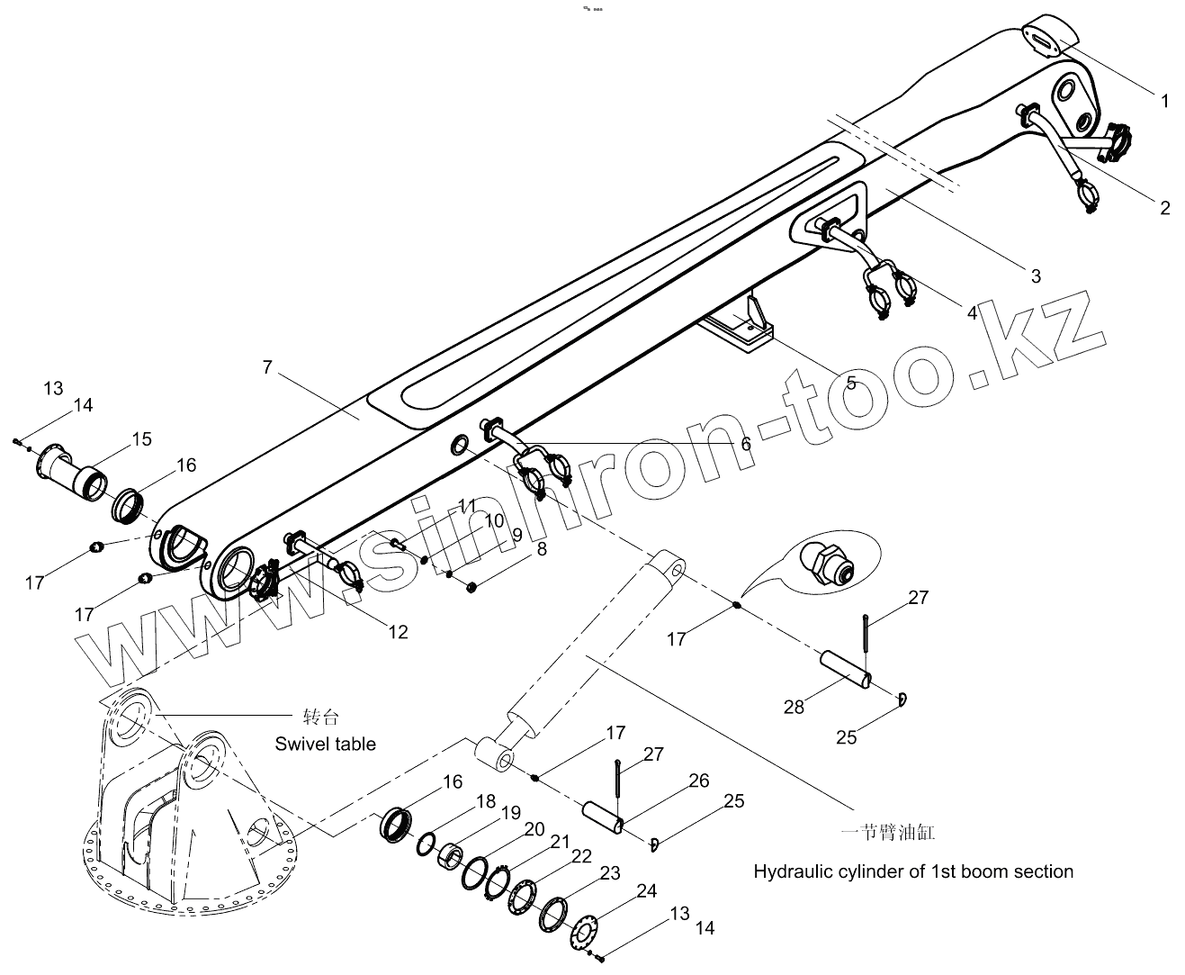 Каталог запасных частей к технике: Zoomlion 33X-4Z. One-section arm 001615406A0100000