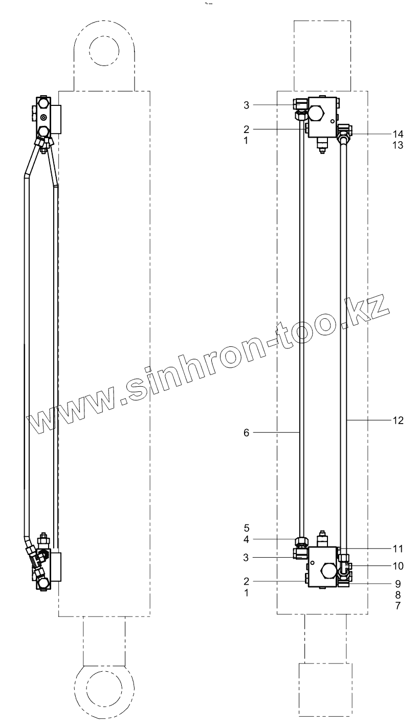 Каталог запасных частей к технике: Zoomlion 33X-4Z. One-section arm cylinder layout diagram 001615449A0004000