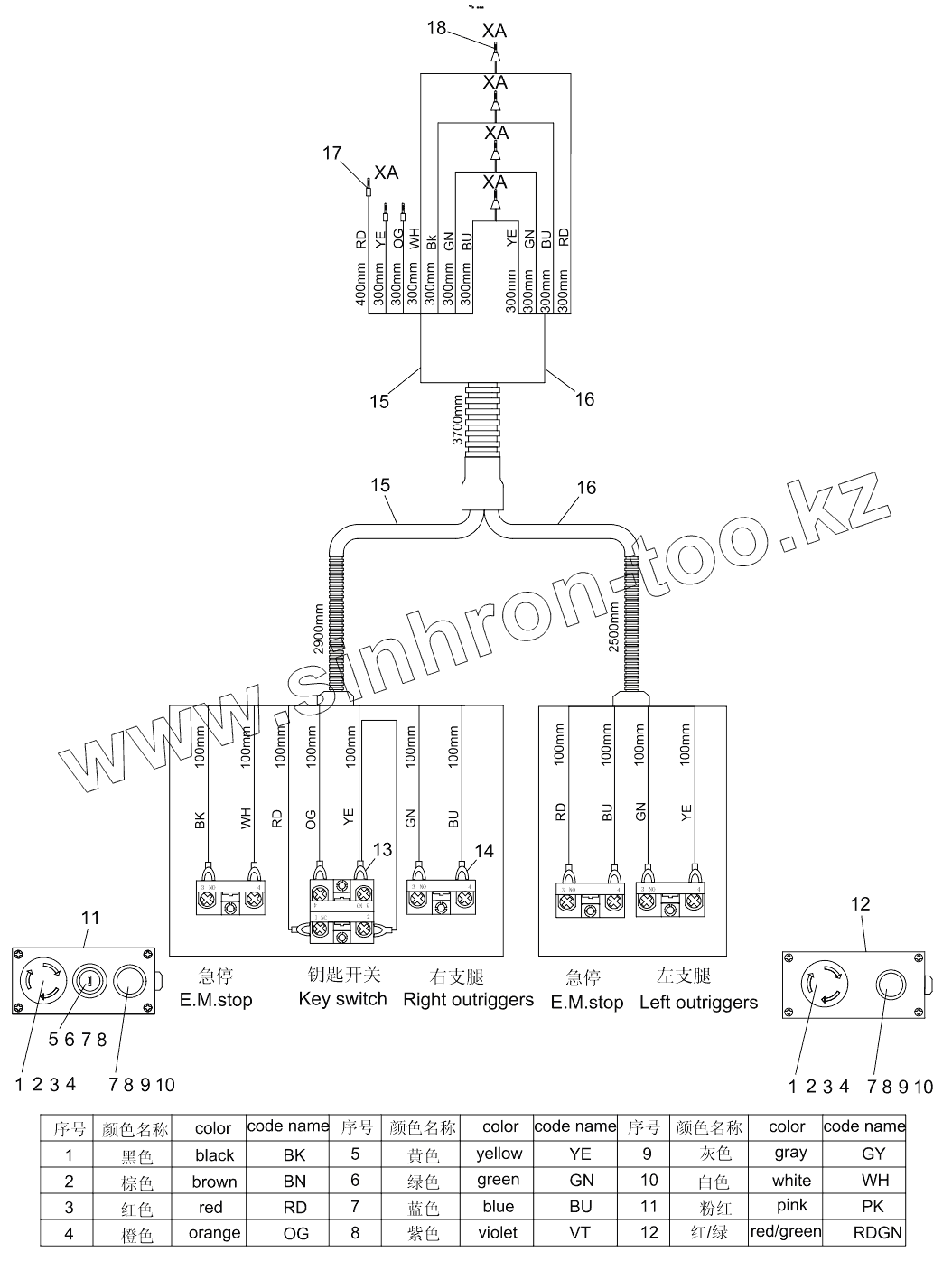 Каталог запасных частей к технике: Zoomlion 33X-4Z. Outrigger control box wiring harness 001600027301B3C00