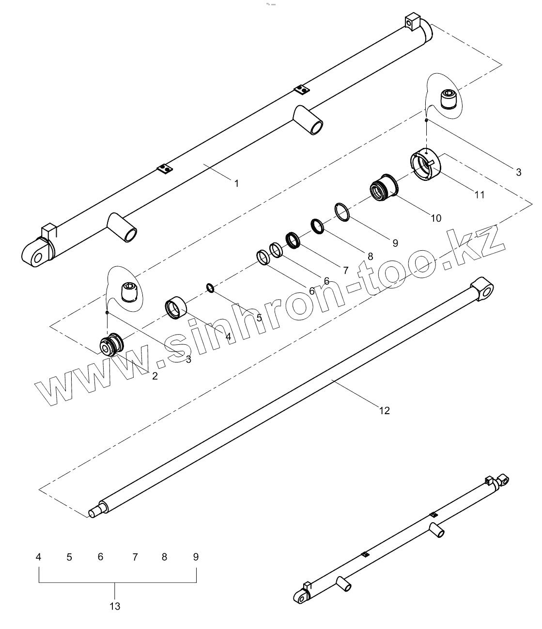 Каталог запасных частей к технике: Zoomlion 33X-4Z. Rear horizontal telescopic cylinder 001615404A0900000