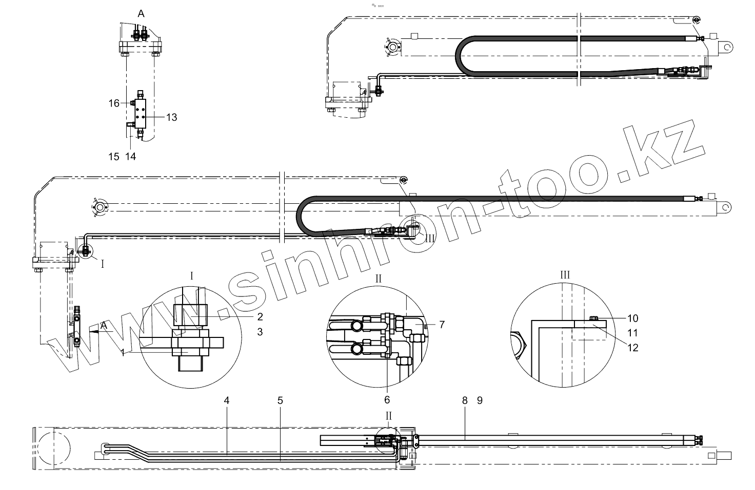 Каталог запасных частей к технике: Zoomlion 33X-4Z. Rear outrigger cloth tube diagram 001615457A0004000
