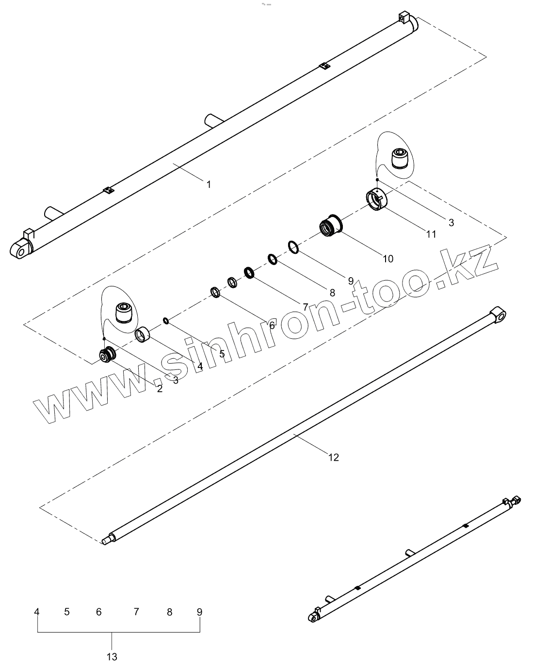 Каталог запасных частей к технике: Zoomlion 33X-4Z. Right front horizontal telescopic cylinder 001615404A0800000