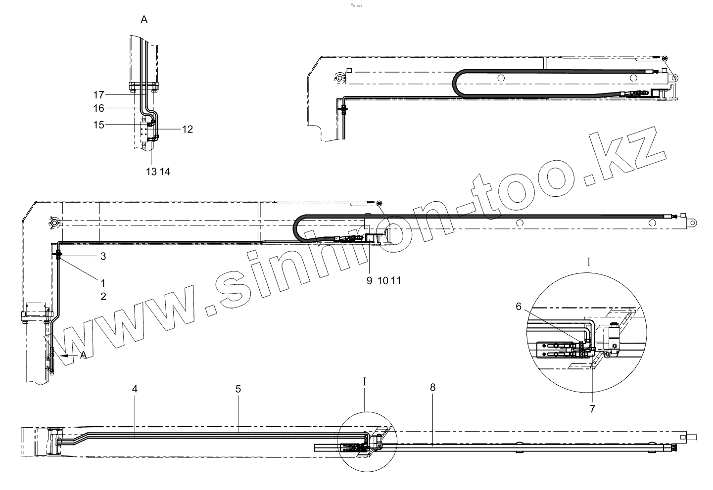 Каталог запасных частей к технике: Zoomlion 33X-4Z. Right front outrigger cloth tube diagram 001615457A0003000