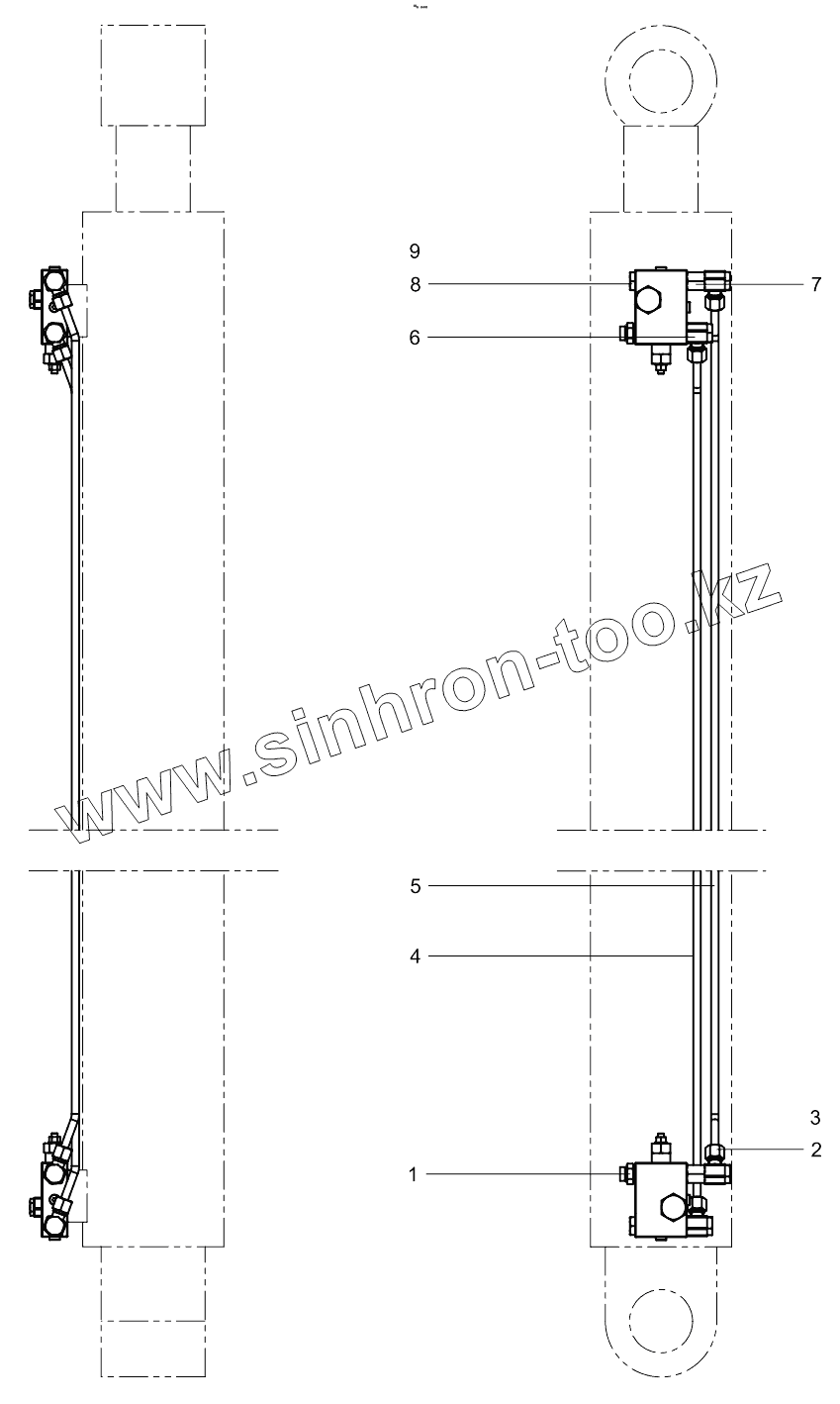Каталог запасных частей к технике: Zoomlion 33X-4Z. Three-section arm cylinder layout diagram 001615449A0006000