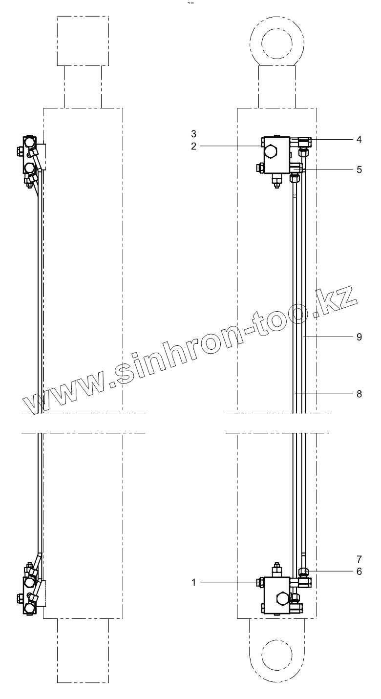 Каталог запасных частей к технике: Zoomlion 33X-4Z. Two-section arm cylinder layout diagram 001615449A0005000