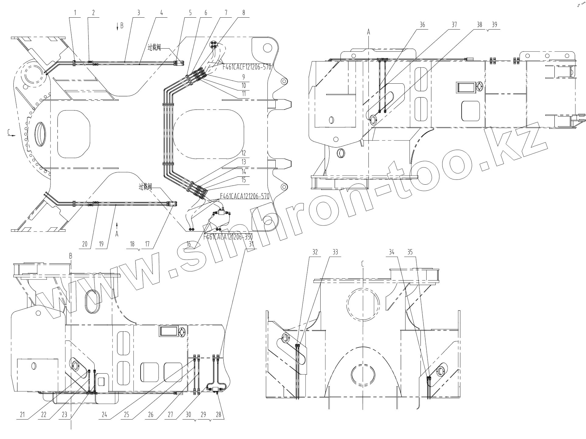 Каталог запасных частей к технике: Zoomlion 47X-5RZ. HYDRAULIC PIPELINE OF BASE STRUCTRE