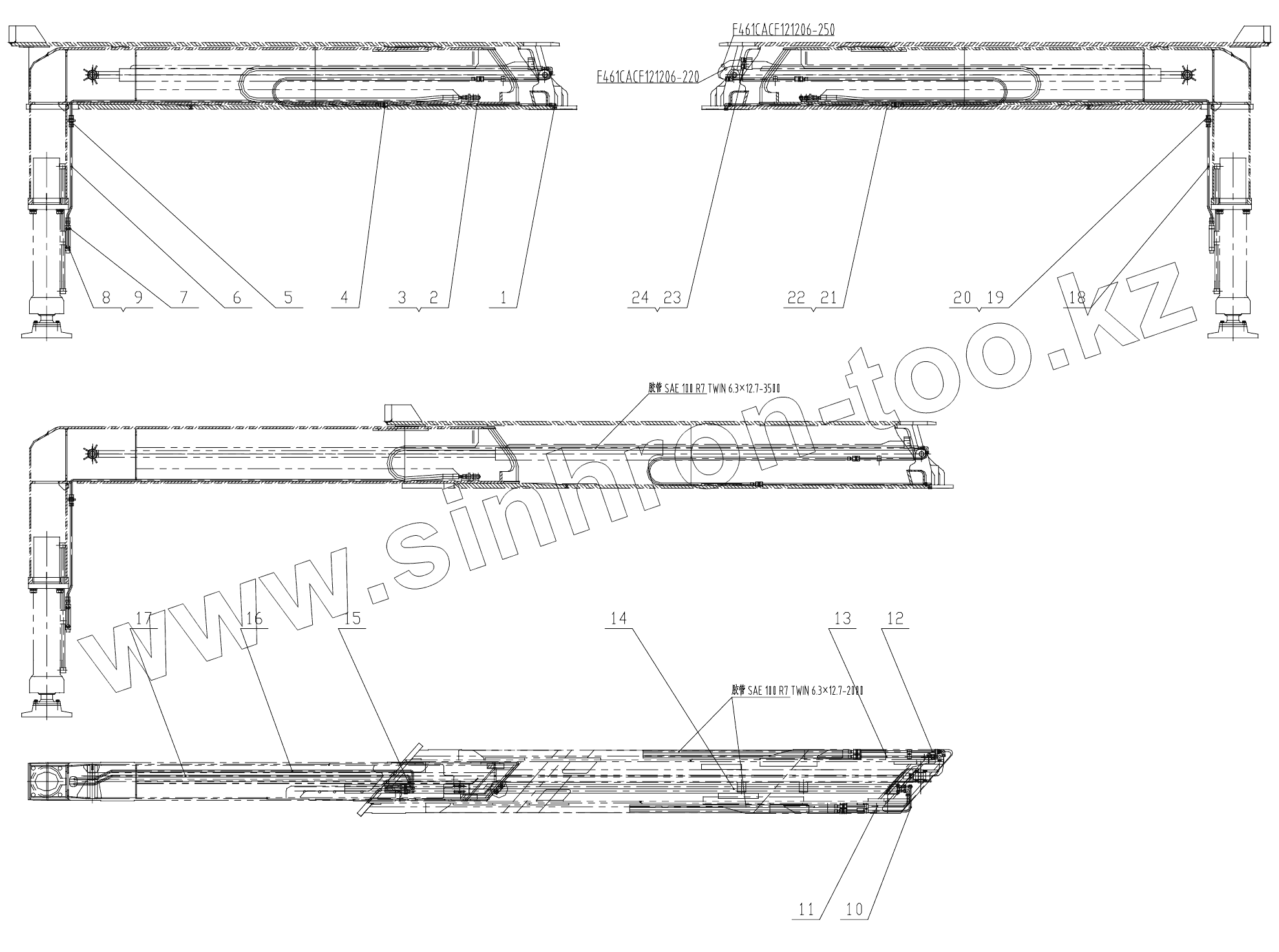 Каталог запасных частей к технике: Zoomlion 47X-5RZ. HYDRAULIC PIPELINE OF RIGHT-FRONT OUTRIGGER