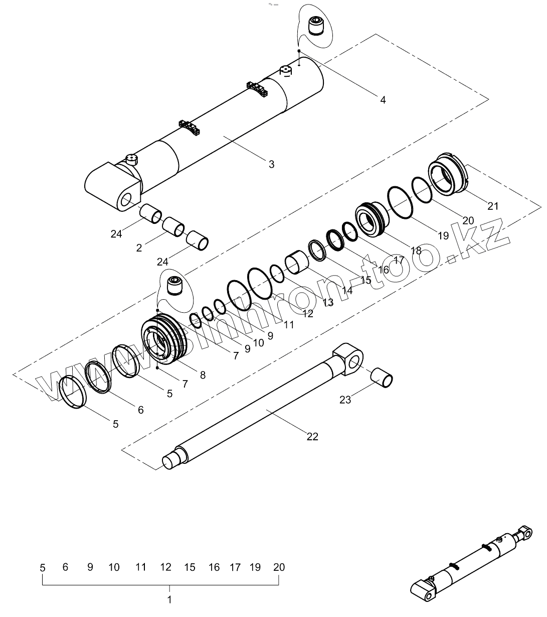 Каталог запасных частей к технике: Zoomlion K56X-6RZ. 2nd boom cylinder 001621207A0200000