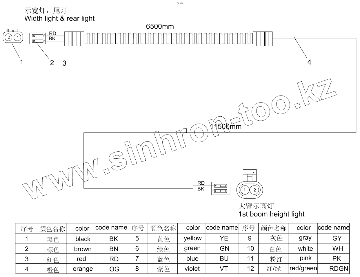 Каталог запасных частей к технике: Zoomlion K56X-6RZ. Boom height light wiring harness 001619127300A3AC1