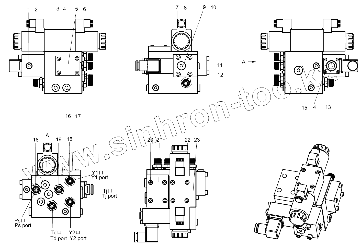 Каталог запасных частей к технике: Zoomlion K56X-6RZ. Controller valve unit (EC) 001607518A0003000