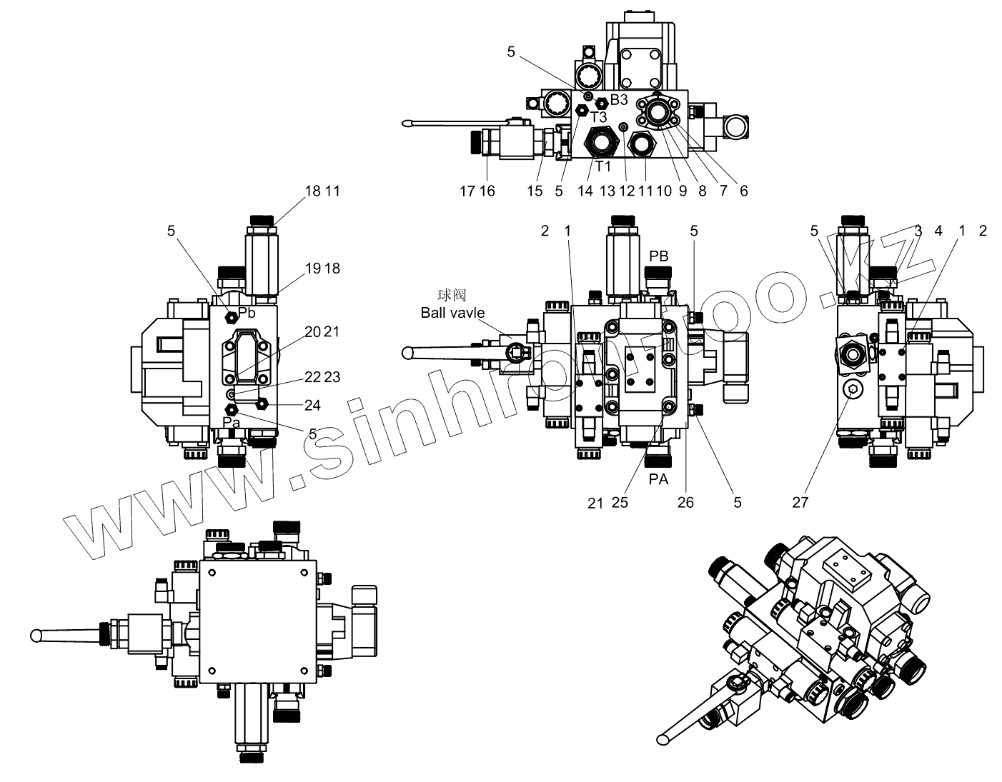 Каталог запасных частей к технике: Zoomlion K56X-6RZ. Distributing valve block 001620419A0001000